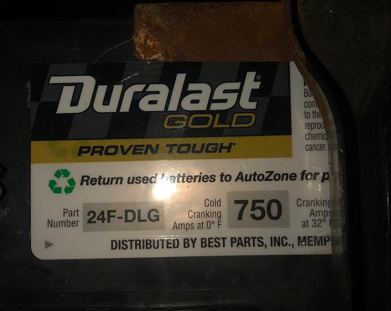Duralast gold battery 24f dlg group size 24f 750 cca. Check spelling or type a new query. Maybe you would like to learn more about one of these? We did not find results for: